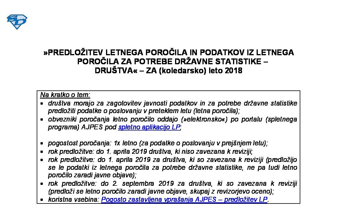 PREDLOŽITEV LETNEGA POROČILA TER KONSOLIDIRANEGA LETNEGA POROČILA IN PODATKOV IZ LETNEGA POROČILA ZA POTREBE DRŽAVNE STATISTIKE – DRUŽBE, KI SO ZAVEZANE K REVIZIJI LETNIH POROČIL - ZA (poslovno/koledarsko) leto 2025 04.02.2026