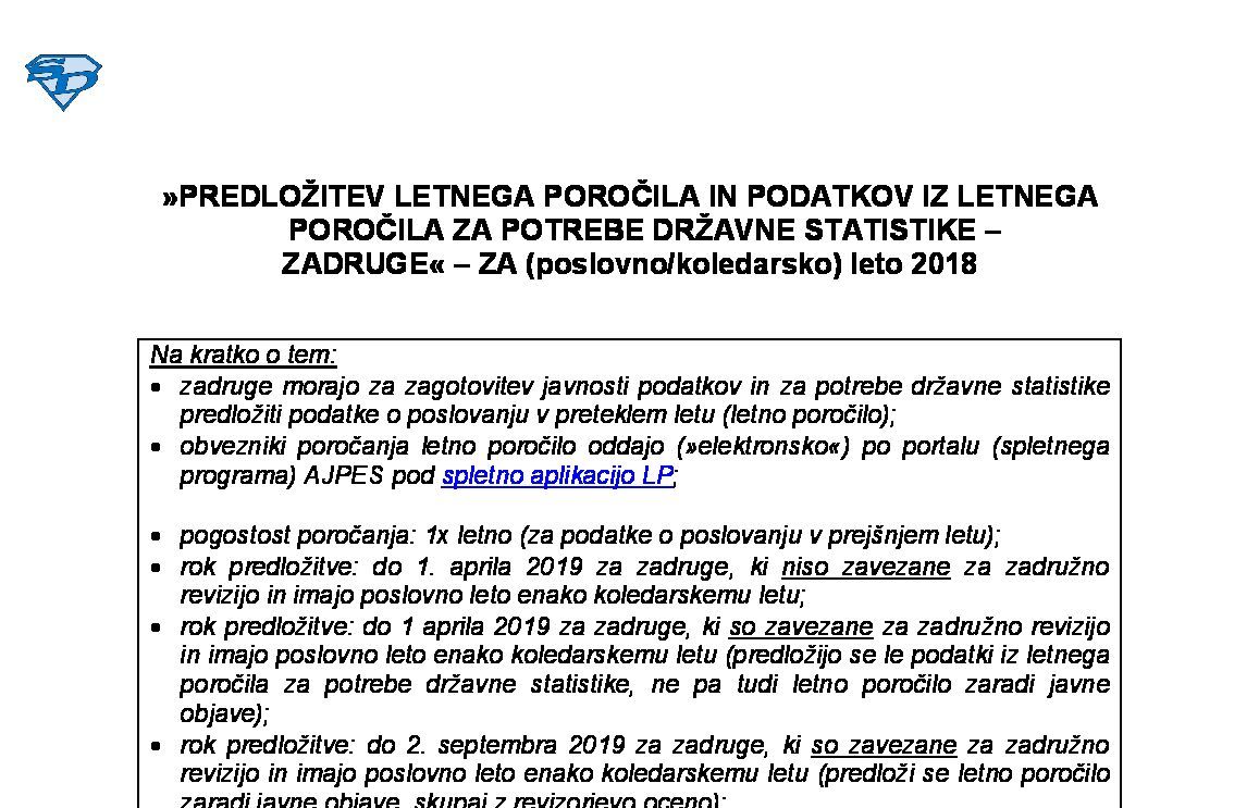 PREDLOŽITEV LETNEGA POROČILA IN PODATKOV IZ LETNEGA POROČILA ZA POTREBE DRŽAVNE STATISTIKE – ZADRUGE - ZA (poslovno/koledarsko) leto 2025 04.02.2026