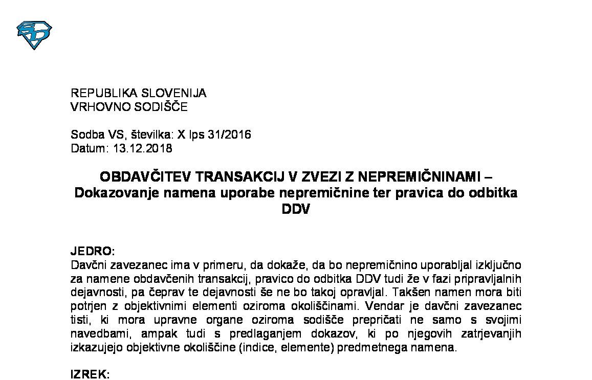 PRAVICA DO ODBITKA DDV – Dokazovanje obstoja goljufije na področju DDV s strani davčnega organa (X Ips 73/2021) 08.03.2023 13.06.2023