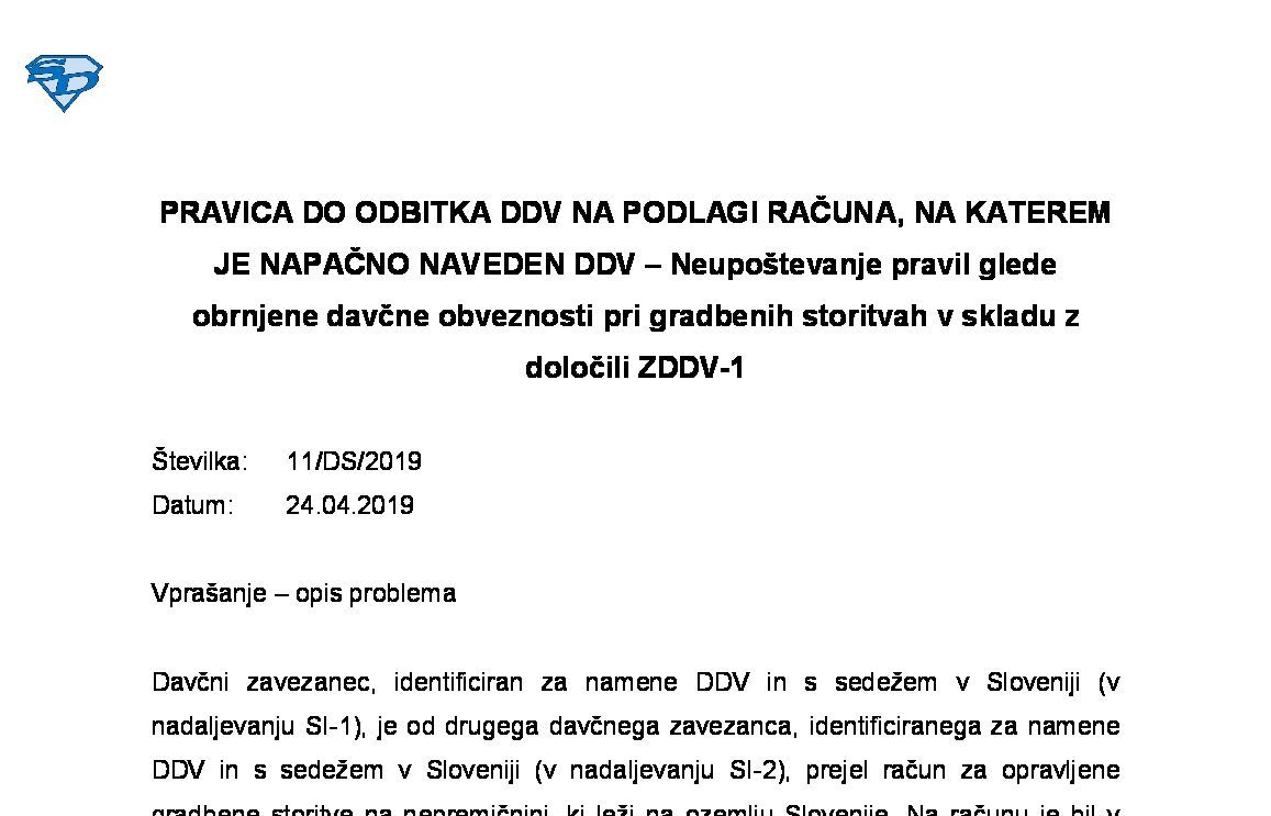 SLOVENSKI DAVČNI ZAVEZANEC OPRAVI STORITEV SEČNJE DREVES (GOZDA) NA OZEMLJU SLOVENIJE HRVAŠKEMU DAVČNEMU ZAVEZANCU – Določitev kraja opravljanja storitev skladno z določili ZDDV-1 25.11.2025 25.11.2025