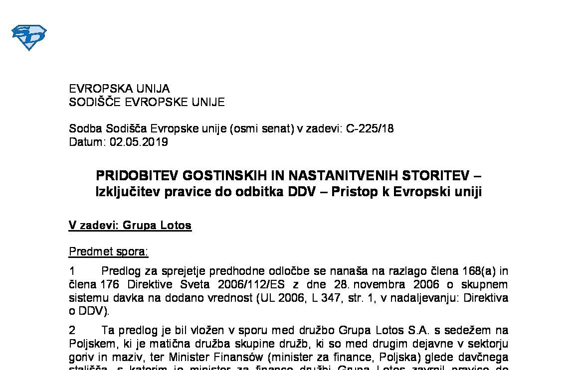 VRAČILO DDV DAVČNIM ZAVEZANCEM, KI NIMAJO SEDEŽA V DRŽAVI ČLANICI VRAČILA – GLAVNA IN POMOŽNA STORITEV – UMETNA DELITEV ENOTNE STORITVE – Neobstoj premestitve predmeta dobave (C-234/24) 23.10.2025 24.10.2025