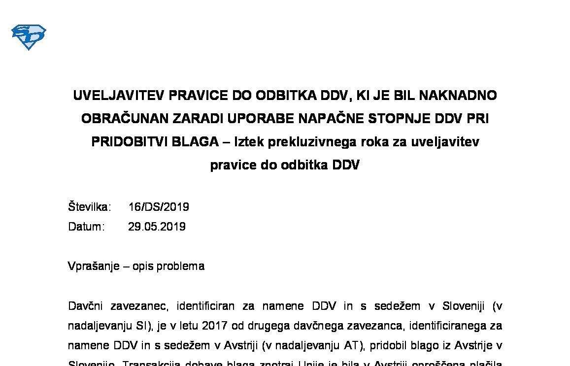 PRAVICA DO VRAČILA DDV PRI IZNOSU BLAGA IZ UNIJE – Presoja izpolnjevanja pogojev pri fizični osebi s stalnim prebivališčem v tretji državi in začasnim prebivališčem v Sloveniji 21.01.2026 21.01.2026