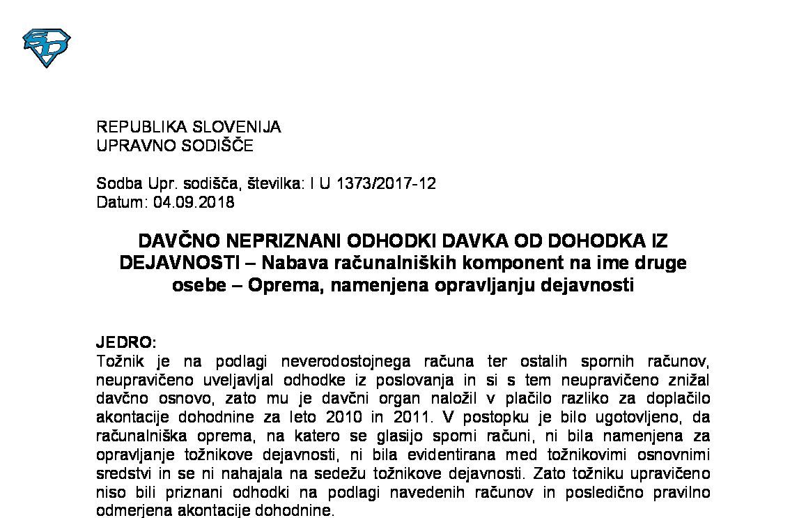 OPRAVLJANJE DEJAVNOSTI S SKRAJŠANIM DELOVNIM ČASOM ZARADI STARŠEVSTVA – Ugotavljanje davčne osnove z upoštevanjem normiranih odhodkov in izpolnjevanje pogoja obvezno zavarovane vsej ene osebe za polni delovni čas (I U 1630/2022-15) 13.11.2025 13.11.2025