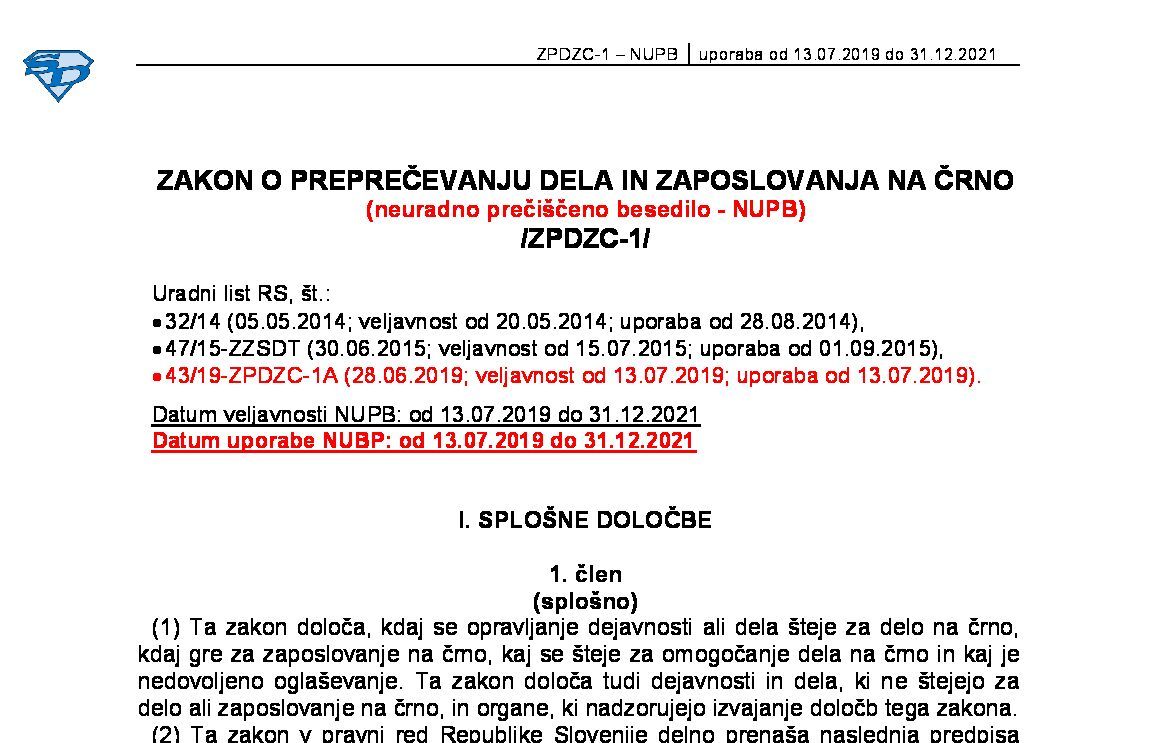 ZAKON O UREJANJU TRGA DELA (ZUTD - neuradno prečiščeno besedilo) 29.10.2025 [!] 29.10.2025