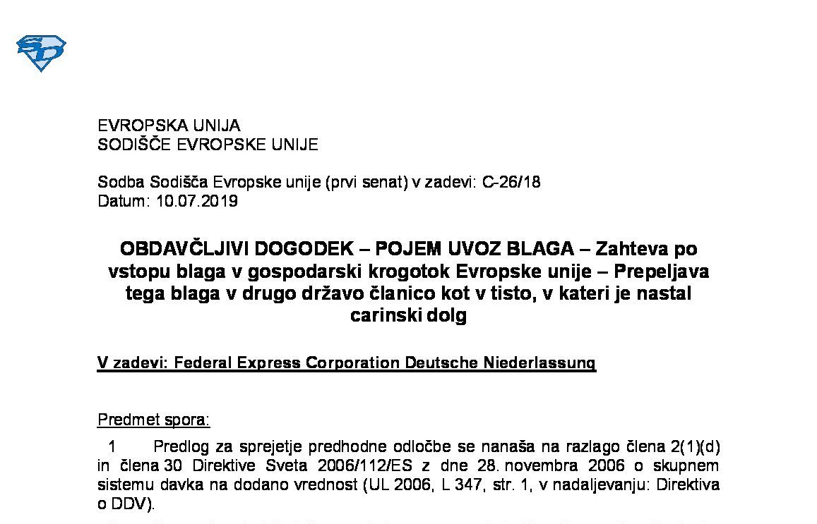 VRAČILO DDV DAVČNIM ZAVEZANCEM, KI NIMAJO SEDEŽA V DRŽAVI ČLANICI VRAČILA – GLAVNA IN POMOŽNA STORITEV – UMETNA DELITEV ENOTNE STORITVE – Neobstoj premestitve predmeta dobave (C-234/24) 23.10.2025 24.10.2025