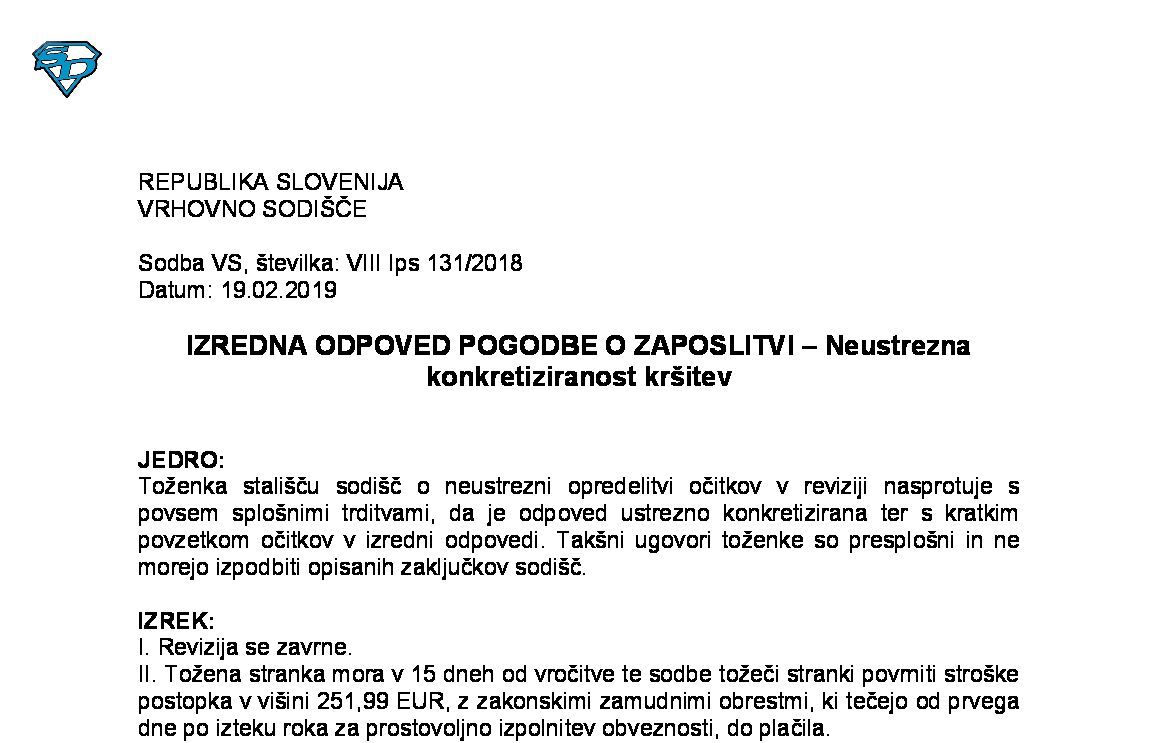PRAVNOMOČNA SODBA IN OBSTOJ DELOVNEGA RAZMERJA – Podlaga in obseg zavarovanja (VIII Ips 26/2024) 11.04.2025 26.05.2025
