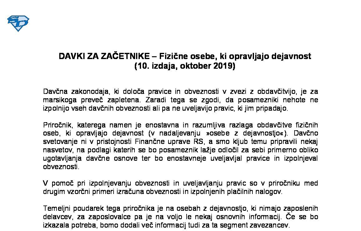 Članek nima posebnosti! DAVKI ZA ZAČETNIKE - Fizične osebe, ki opravljajo dejavnost (10. izdaja, oktober 2019).pdf