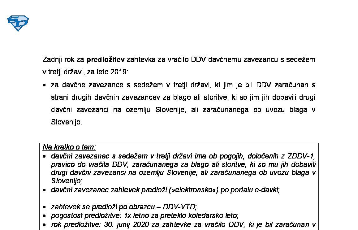 Predložitev zahtevka za vračilo DDV davčnemu zavezancu s sedežem v Sloveniji, ki ima pravico do vračila v drugi državi članici 2026-09-30 00:00:00