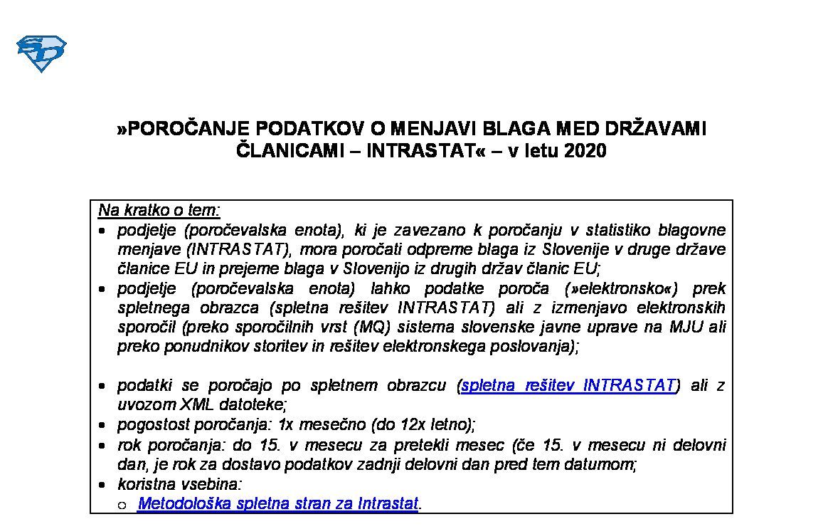 POROČANJE PODATKOV O MENJAVI BLAGA MED DRŽAVAMI ČLANICAMI - INTRASTAT - V letu 2025 22.01.2025