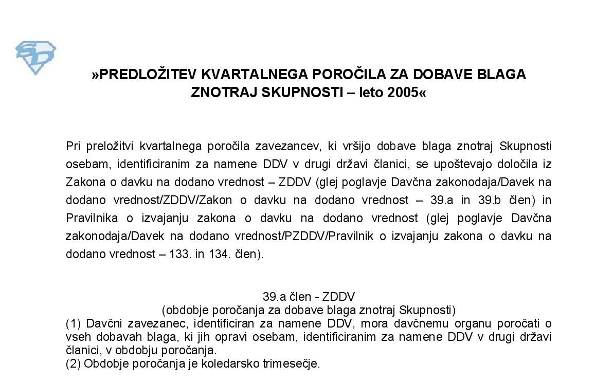 PREDLOŽITEV POROČILA O DOBAVI BLAGA ALI STORITEV PO 76.A ČLENU ZDDV-1 - leto 2026 04.12.2025
