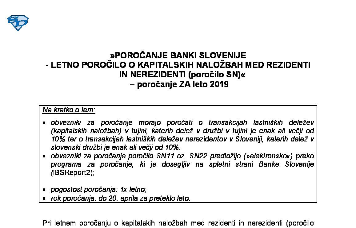 POROČANJE BANKI SLOVENIJE - LETNO POROČILO O KAPITALSKIH NALOŽBAH MED REZIDENTI IN NEREZIDENTI (poročilo SN) - poročanje za leto 2025 09.01.2026