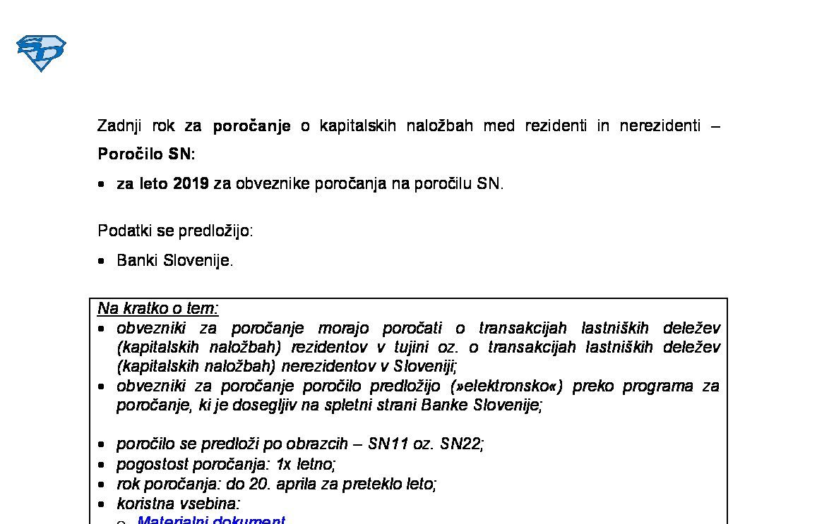 Poročanje Banki Slovenije - mesečno poročilo o kapitalskih naložbah med rezidenti in nerezidenti - transakcije - SN-T 2025-12-20 00:00:00