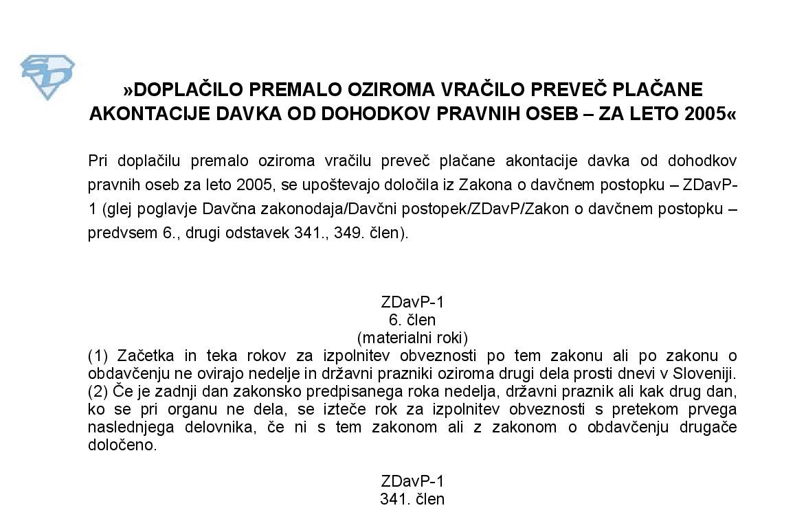 DOPLAČILO PREMALO OZIROMA VRAČILO PREVEČ PLAČANE AKONTACIJE DAVKA OD DOHODKOV PRAVNIH OSEB (DDPO) - za leto 2025 11.12.2025