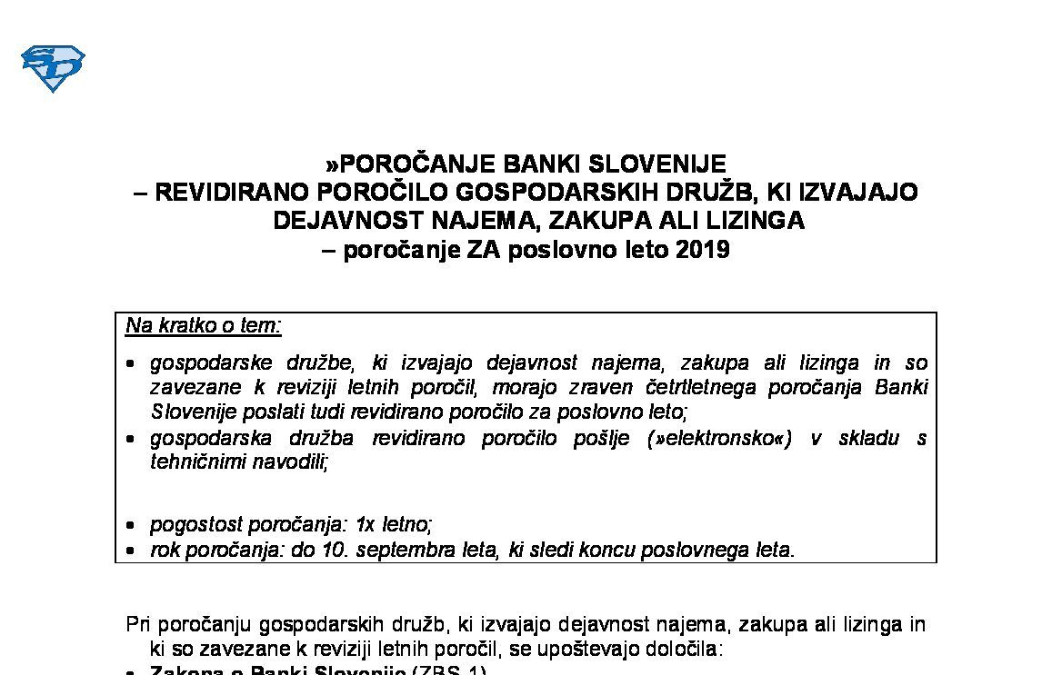 POROČANJE BANKI SLOVENIJE - REVIDIRANO POROČILO GOSPODARSKIH DRUŽB, KI IZVAJAJO DEJAVNOST NAJEMA, ZAKUPA ALI LIZINGA - poročanje za poslovno leto 2025 16.01.2026