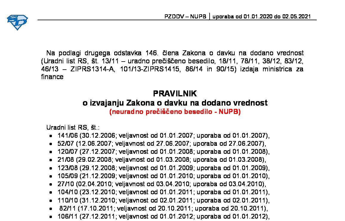 Pravilnik o izvajanju Zakona o davku na dodano vrednost (PZDDV - neuradno prečiščeno besedilo) 01.01.2025 [!] 30.12.2024