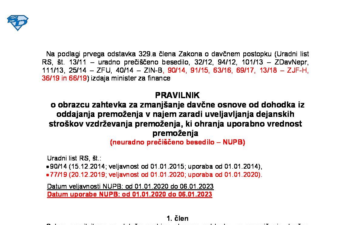 Priloga 1 - ZAHTEVEK za zmanj DO od DOH iz oddajanja PREM v najem zaradi uvelj stroškov vzdrževanja PREM, ki ohranja uporabno vred PREM.pdf Priloga 2 - NAVODILO za izpoln zah za zmanj DO od DOH iz oddaj PREM v najem zaradi uvelj DEJ str vzdr PREM, ki ohranja upor vred PREM.pdf |