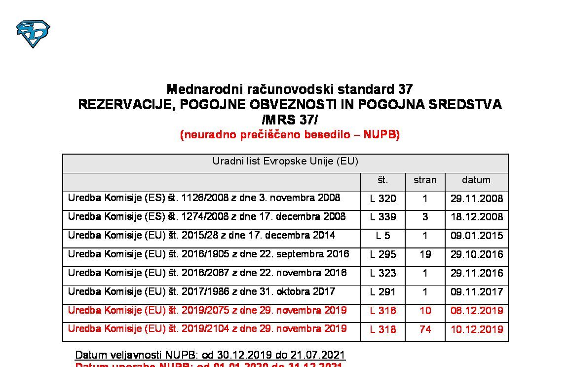 Podjetja začnejo uporabljati NUPB MRS-37 najpozneje z začetkom prvega poslovnega leta, ki se začne 1. januarja 2020 ali po tem datumu.