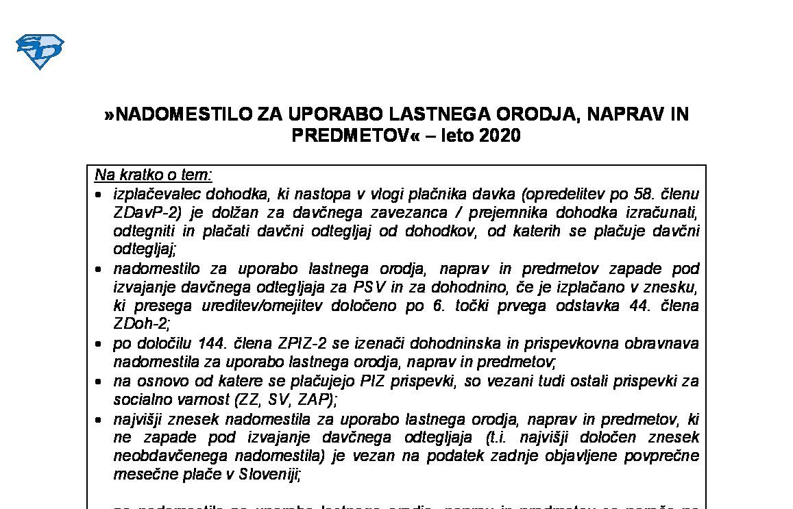 NADOMESTILO ZA UPORABO LASTNEGA ORODJA, NAPRAV IN PREDMETOV - leto 2021 02.12.2021
