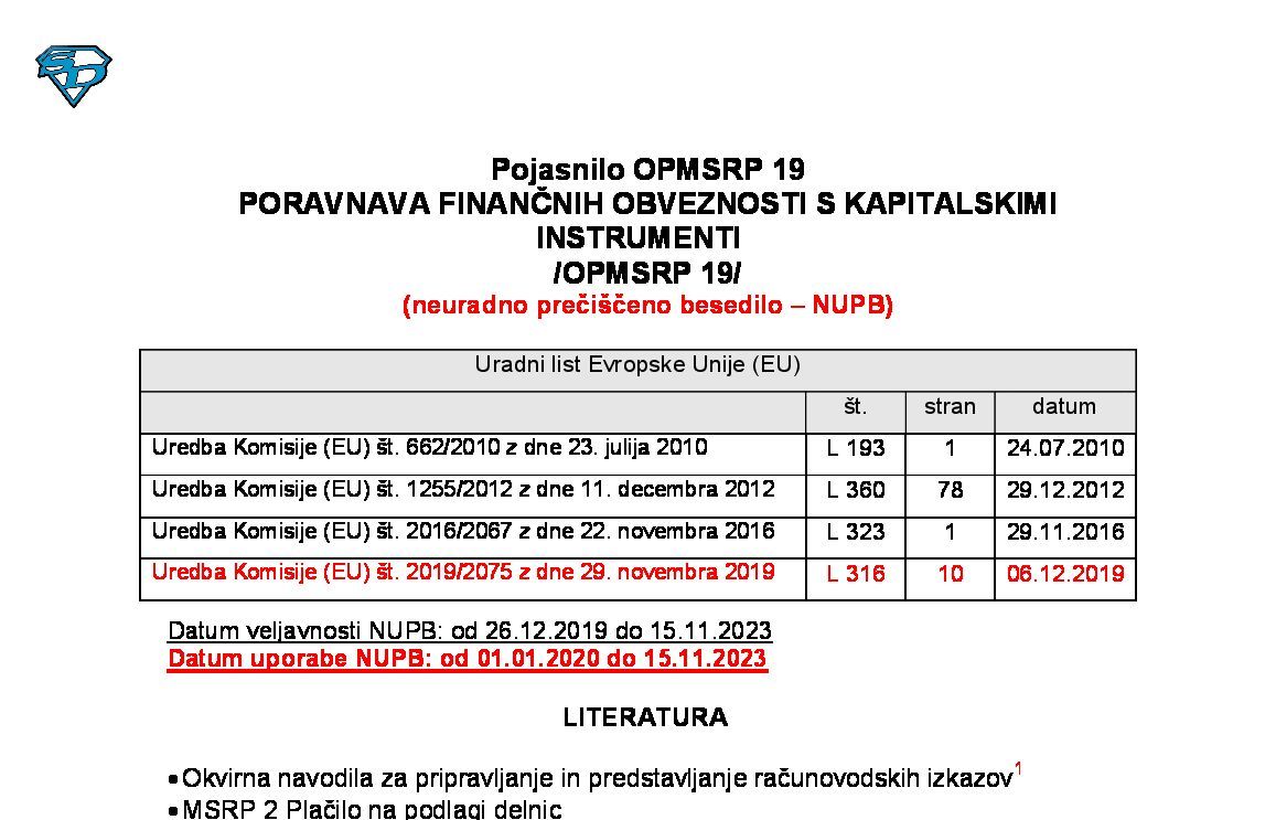 Podjetja začnejo uporabljati NUPB OPMSRP-19 najpozneje z začetkom prvega poslovnega leta, ki se začne 1. januarja 2020 ali po tem datumu.