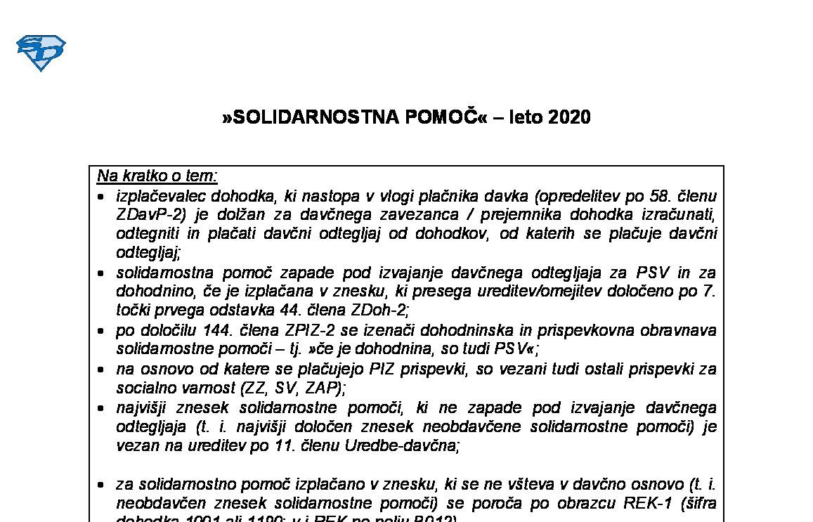 SOLIDARNOSTNA POMOČ - leto 2013 07.01.2013