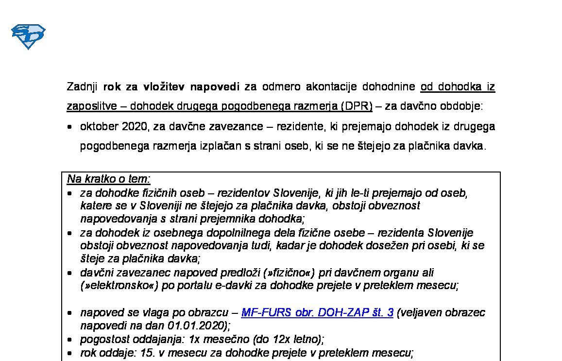 Sprememba predhodne AkDoh / AkDoh od dohodka iz dejavnosti za leto 2026 (obračun DOHDej) med davčnim letom 2026-10-01 00:00:00
