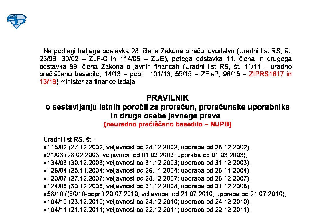 Pravilnik o sestavljanju letnih poročil za proračun, proračunske uporabnike in druge osebe javnega prava (NUPB- neuradno prečiščeno besedilo) 08.07.2025 09.07.2025