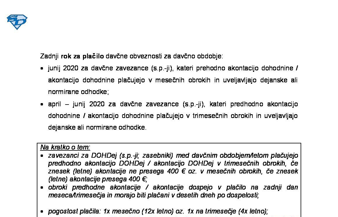 Sprememba predhodne AkDoh / AkDoh od dohodka iz dejavnosti za leto 2026 (obračun DOHDej) med davčnim letom 2026-08-03 00:00:00
