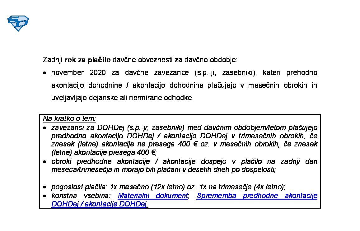 Sprememba predhodne AkDoh / AkDoh od dohodka iz dejavnosti za leto 2026 (obračun DOHDej) med davčnim letom 2026-11-02 00:00:00