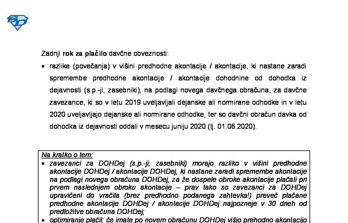 Sprememba predhodne AkDoh / AkDoh od dohodka iz dejavnosti za leto 2026 (obračun DOHDej) med davčnim letom 2026-08-03 00:00:00