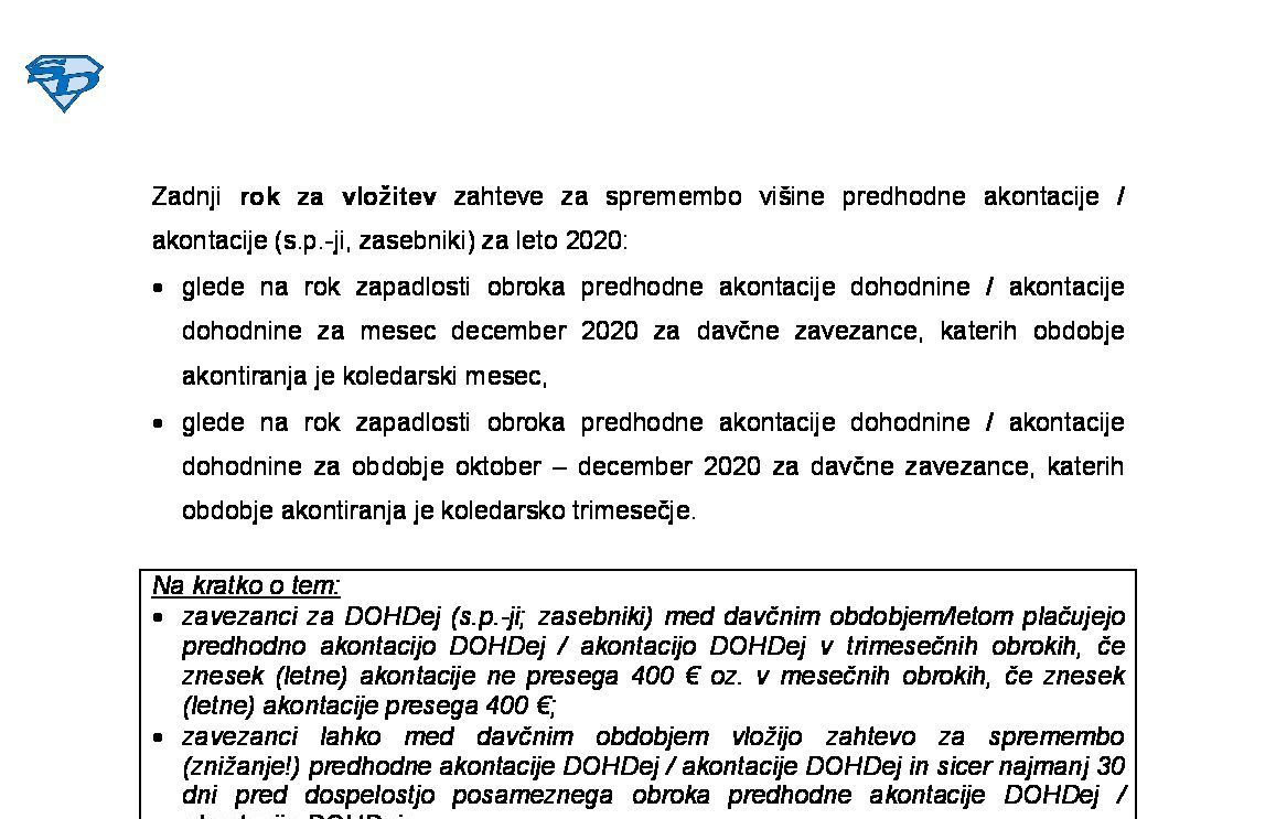 Sprememba predhodne AkDoh / AkDoh od dohodka iz dejavnosti za leto 2026 (obračun DOHDej) med davčnim letom 2026-08-03 00:00:00