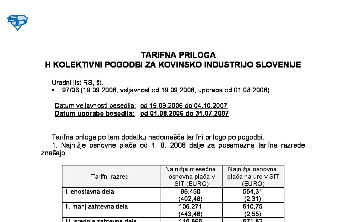 Posebnost uporabe - 2. točka se uporablja od začetka izplačevanja regresa za letni dopust za leto 2006. Članek nima prilog!