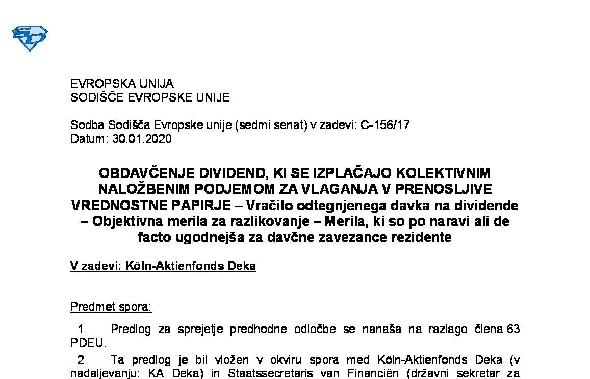 MATERIALNO STATUSNO PREOBLIKOVANJE – ZAVODI – Obdavčitev pri združitvah in delitvah (X Ips 90/2020) 17.03.2021 03.06.2021