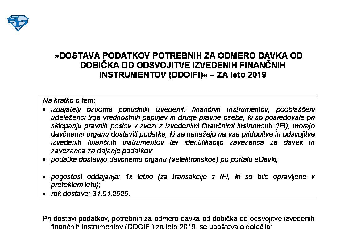 NAPOVED ZA ODMERO DOHODNINE OD DOBIČKA OD ODSVOJITVE VP IN DRUGIH DELEŽEV TER INVESTICIJSKIH KUPONOV (tudi pobot in odlog ugotavljanja) - ZA leto 2025 21.01.2026