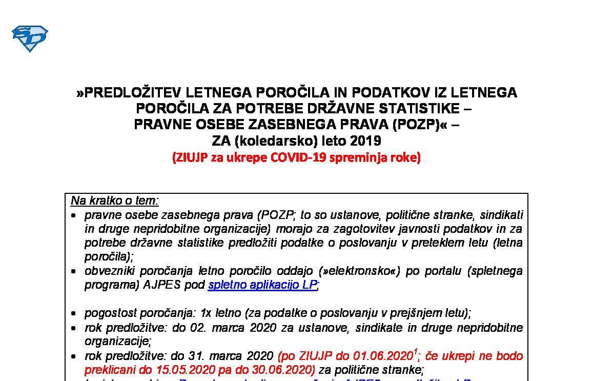 PREDLOŽITEV LETNEGA POROČILA IN PODATKOV IZ LETNEGA POROČILA ZA POTREBE DRŽAVNE STATISTIKE – PRAVNE OSEBE ZASEBNEGA PRAVA (POZP) - ZA (koledarsko) leto 2024 30.01.2025