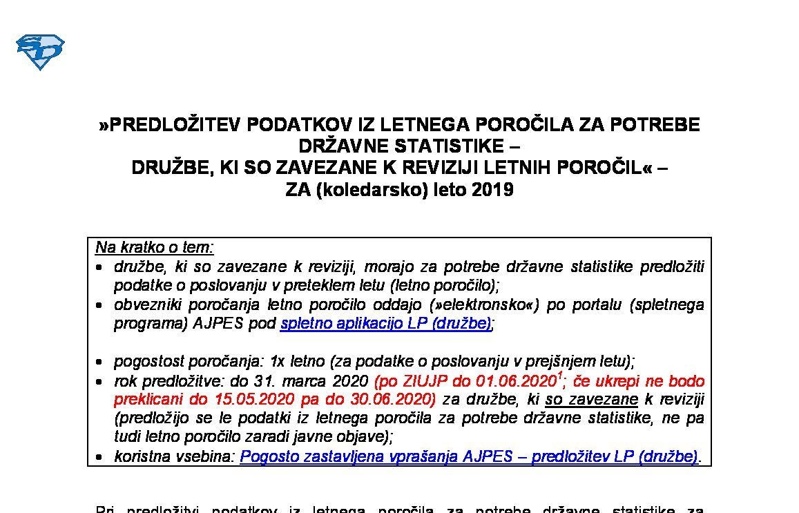PREDLOŽITEV LETNEGA POROČILA TER KONSOLIDIRANEGA LETNEGA POROČILA IN PODATKOV IZ LETNEGA POROČILA ZA POTREBE DRŽAVNE STATISTIKE – DRUŽBE, KI SO ZAVEZANE K REVIZIJI LETNIH POROČIL - ZA (poslovno/koledarsko) leto 2024 31.01.2025