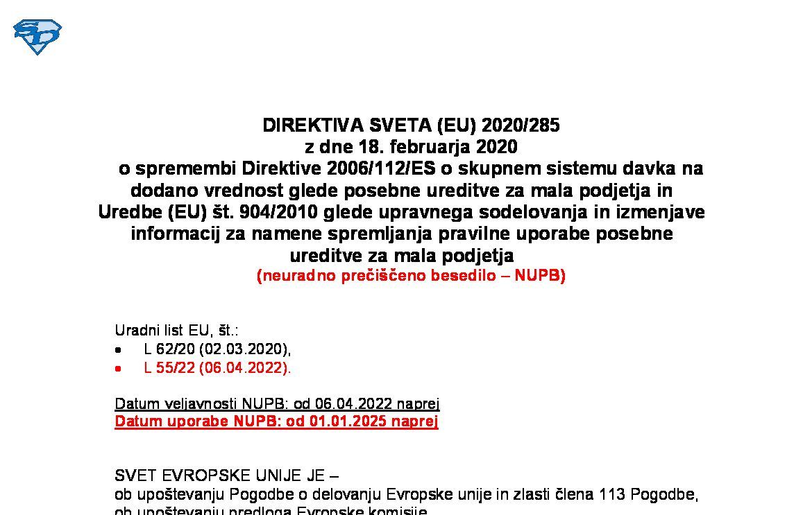 DIREKTIVA SVETA (EU) 2025/516 z dne 11. marca 2025 o spremembi Direktive 2006/112/ES glede pravil o DDV za digitalno dobo 14.04.2025 [!] 26.03.2025