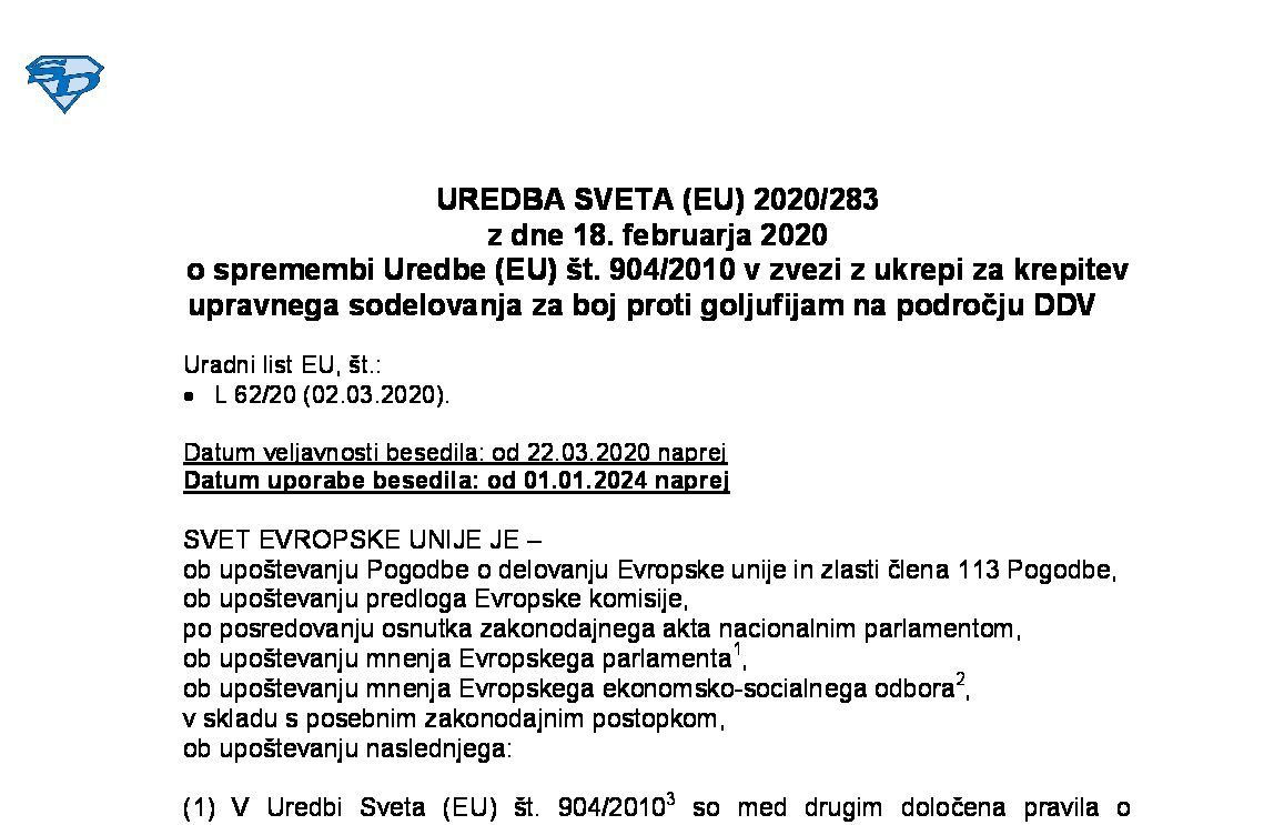 DIREKTIVA SVETA (EU) 2025/517 z dne 11. marca 2025 o spremembi Uredbe (EU) št. 904/2010 glede ureditev upravnega sodelovanja na področju DDV, potrebnih za digitalno dobo 14.04.2025 27.03.2025