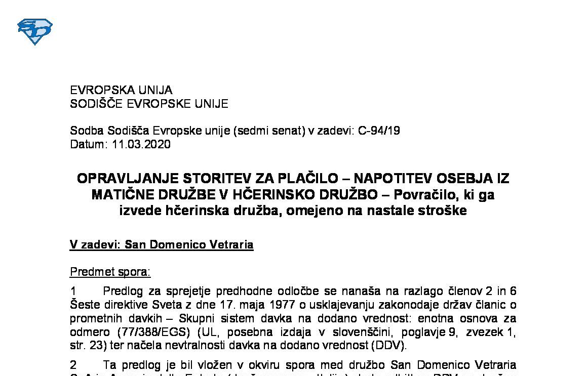 SOLIDARNA ODGOVORNOST – INSOLVENTNOST GLAVNEGA DOLŽNIKA – Ohranitev obveznosti plačila DDV – Solidarna odgovornost tretje osebe po izbrisu glavnega dolžnika iz poslovnega registra (C-121/24) 11.12.2025 12.12.2025