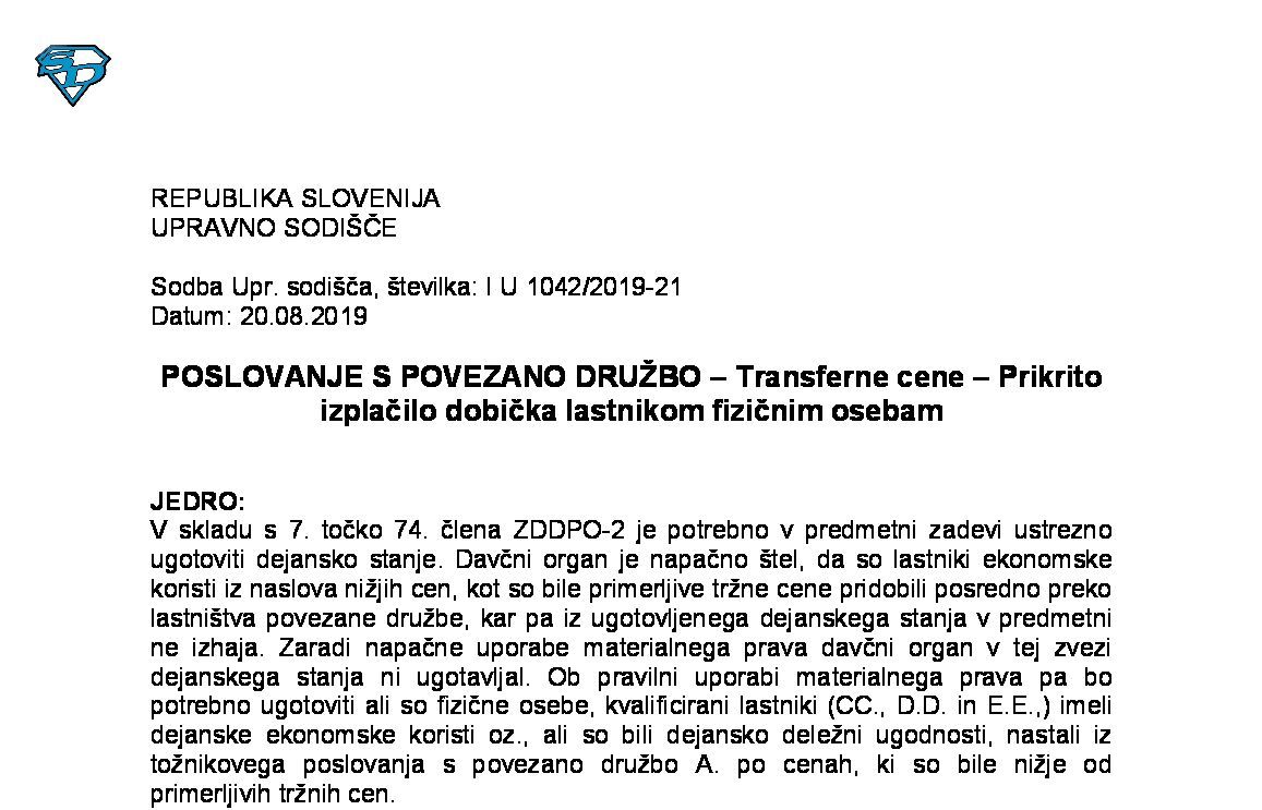 DDPO IN PREKLUZIJA DOKAZOV – Davčno priznan odhodek – Rezervacije – Prikrito izplačilo dobička (I U 652/2021-12) 15.07.2024 30.01.2025