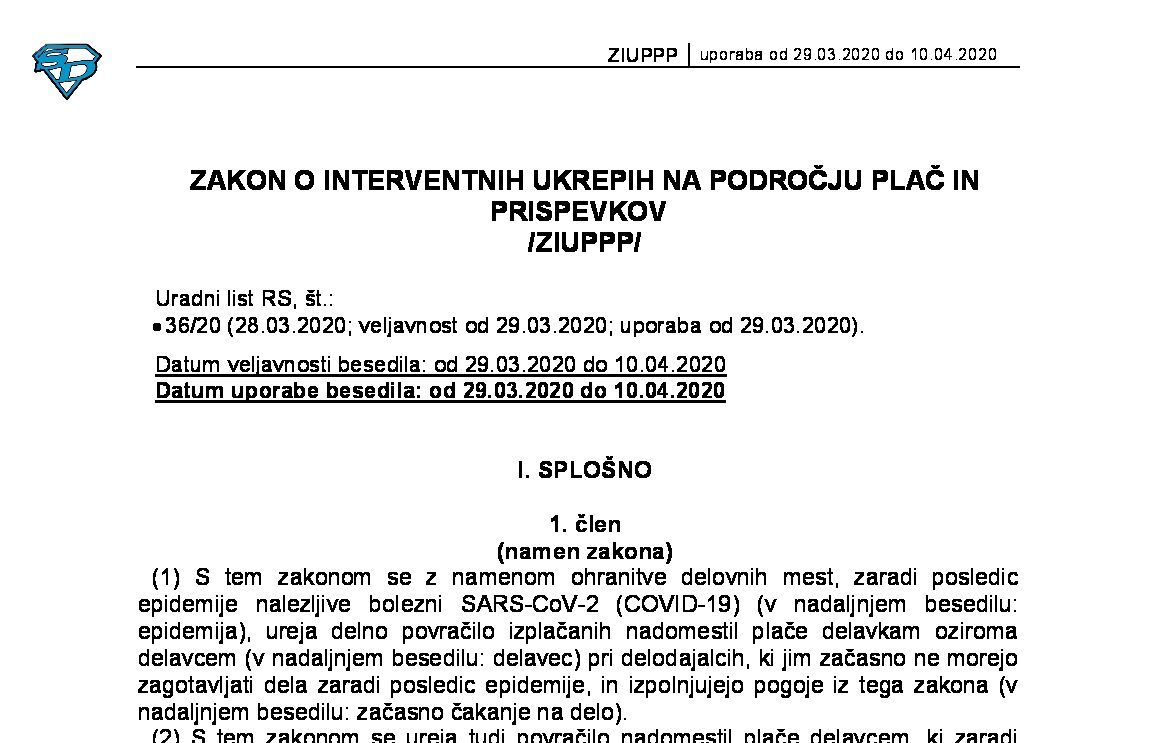 | ZAKON O INTERVENTNIH UKREPIH ZA POMOČ PRI OMILITVI POSLEDIC DRUGEGA VALA EPIDEMIJE COVID-19 (ZIUPOPDVE - neuradno prečiščeno besedilo) | 01.01.2023 | 30.12.2023 | 20.12.2022 | |