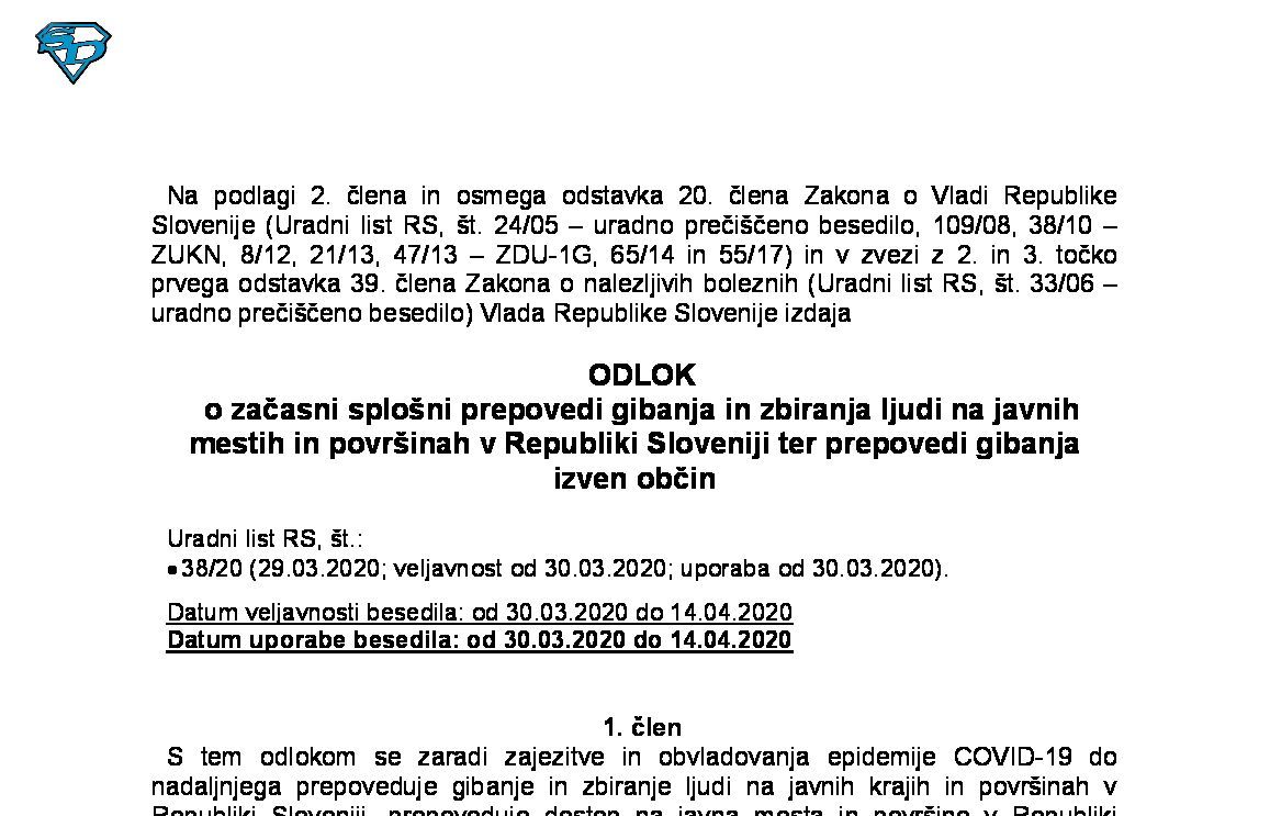 Sklep o uporabi ukrepov, ki jih določa Zakon o nalezljivih boleznih, pri nalezljivi bolezni COVID-19 04.09.2020 04.09.2020