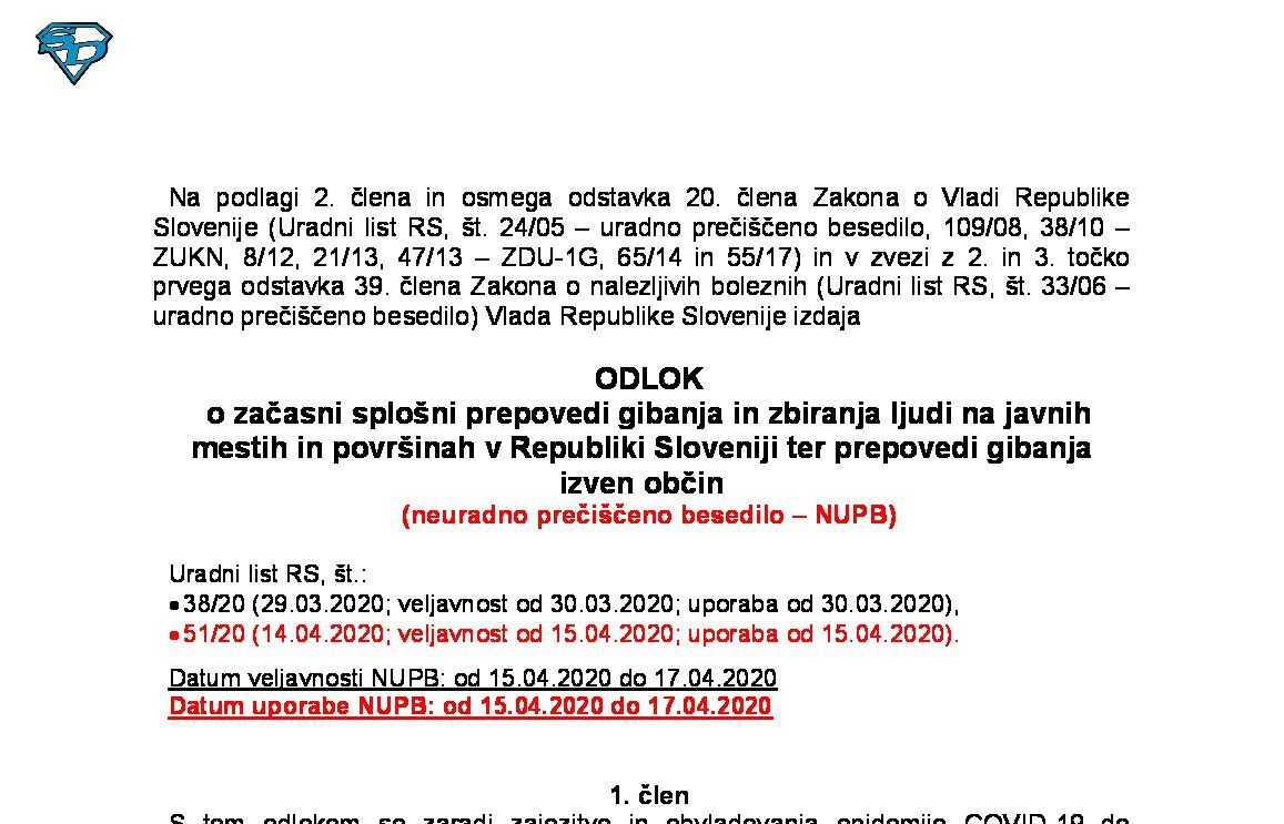 Sklep o uporabi ukrepov, ki jih določa Zakon o nalezljivih boleznih, pri nalezljivi bolezni COVID-19 04.09.2020 04.09.2020