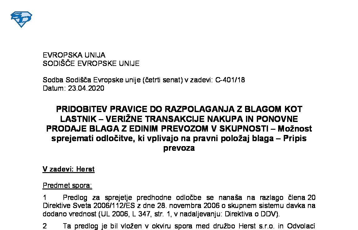 OPROSTITEV V ZVEZI Z DAJANJEM KREDITOV – OPROSTITEV V ZVEZI S FINANČNIMI TRANSAKCIJAMI – IZTERJAVA DOLGOV – Faktoring s prodajo terjatev – Faktoring z zastavno pravico (C-232/24) 23.10.2025 28.10.2025