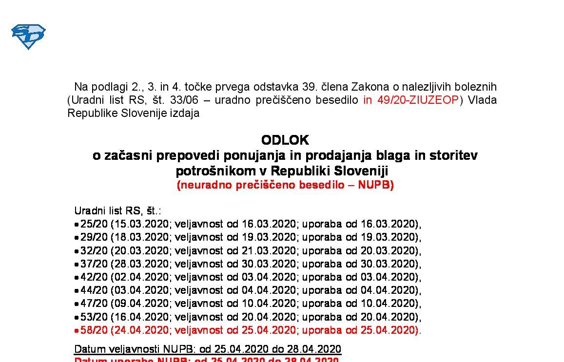 Sklep o uporabi ukrepov, ki jih določa Zakon o nalezljivih boleznih, pri nalezljivi bolezni COVID-19 04.09.2020 04.09.2020