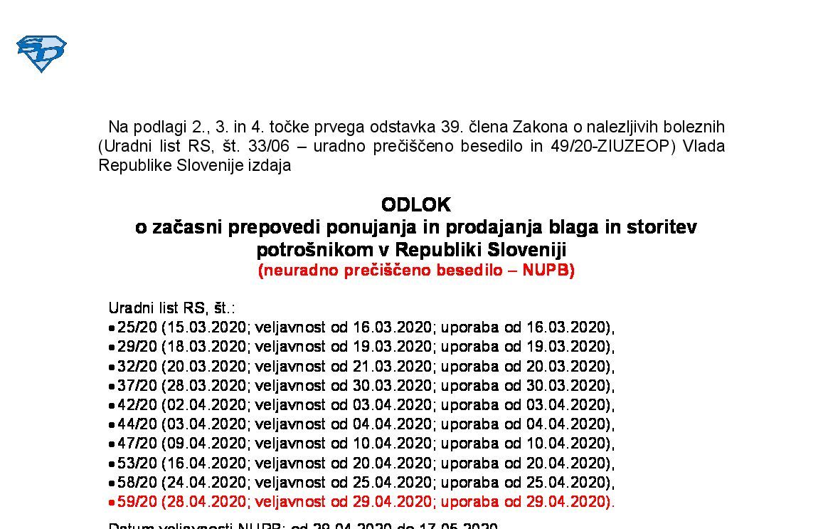 | Odlok o začasnih ukrepih za preprečevanje in obvladovanje okužb z nalezljivo boleznijo COVID-19 | 14.05.2022 | 30.05.2022 | 17.05.2022 | |
