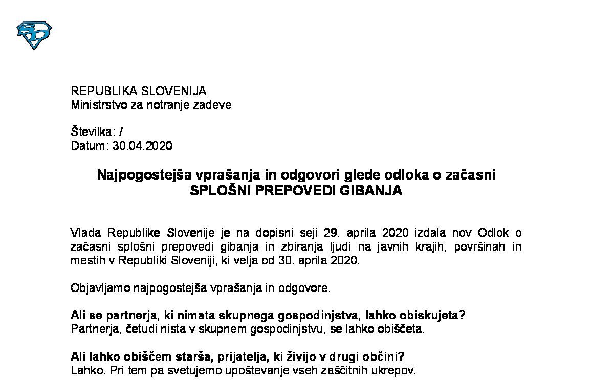 POGOSTA VPRAŠANJA IN ODGOVORI – COVID-19 05.04.2020