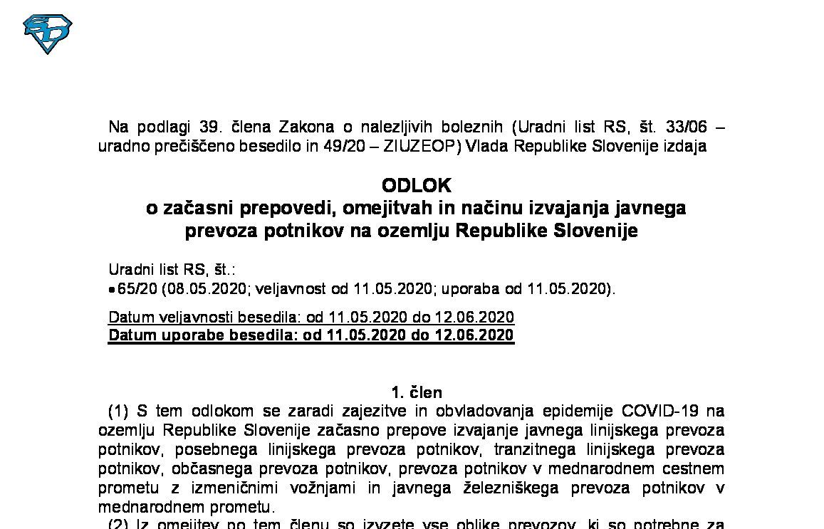 Odlok o začasnih ukrepih za preprečevanje in obvladovanje okužb z nalezljivo boleznijo COVID-19 14.05.2022 30.05.2022 17.05.2022