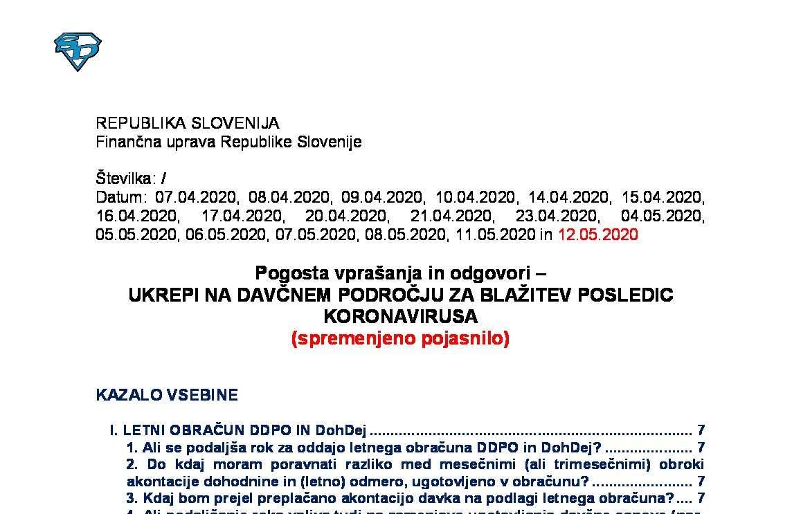 Pogosta vprašanja in odgovori – V ZVEZI Z UKREPI PKP10 NA DAVČNEM PODROČJU (spremenjeno pojasnilo - z dne 28.02.2022) 28.02.2022 01.03.2022