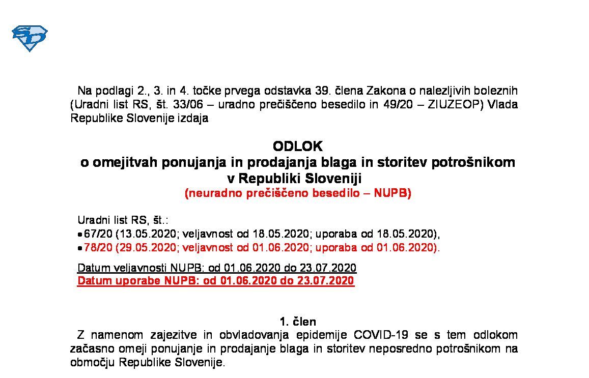 Odlok o začasnih ukrepih za preprečevanje in obvladovanje okužb z nalezljivo boleznijo COVID-19 14.05.2022 30.05.2022 17.05.2022