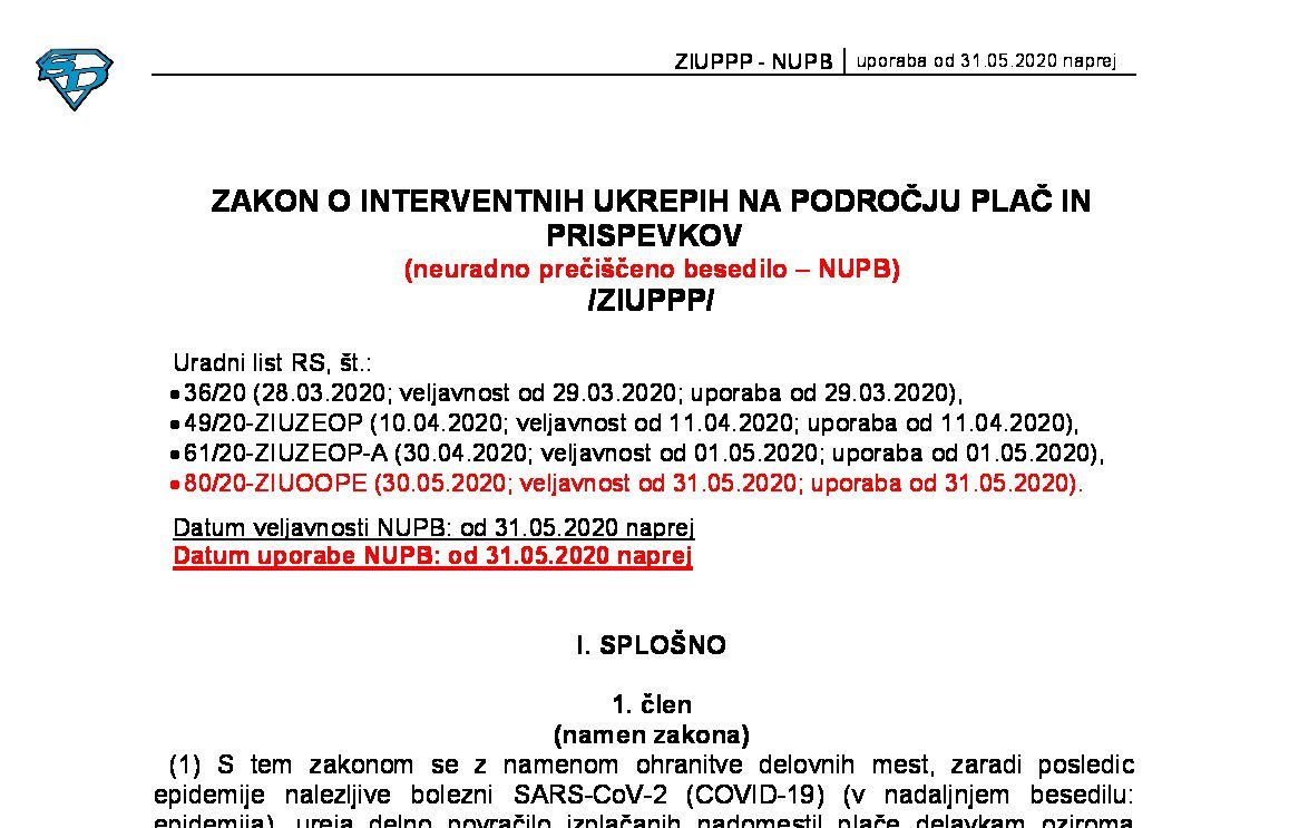 ZAKON O INTERVENTNIH UKREPIH ZA POMOČ PRI OMILITVI POSLEDIC DRUGEGA VALA EPIDEMIJE COVID-19 (ZIUPOPDVE - neuradno prečiščeno besedilo) 31.12.2023 16.02.2024